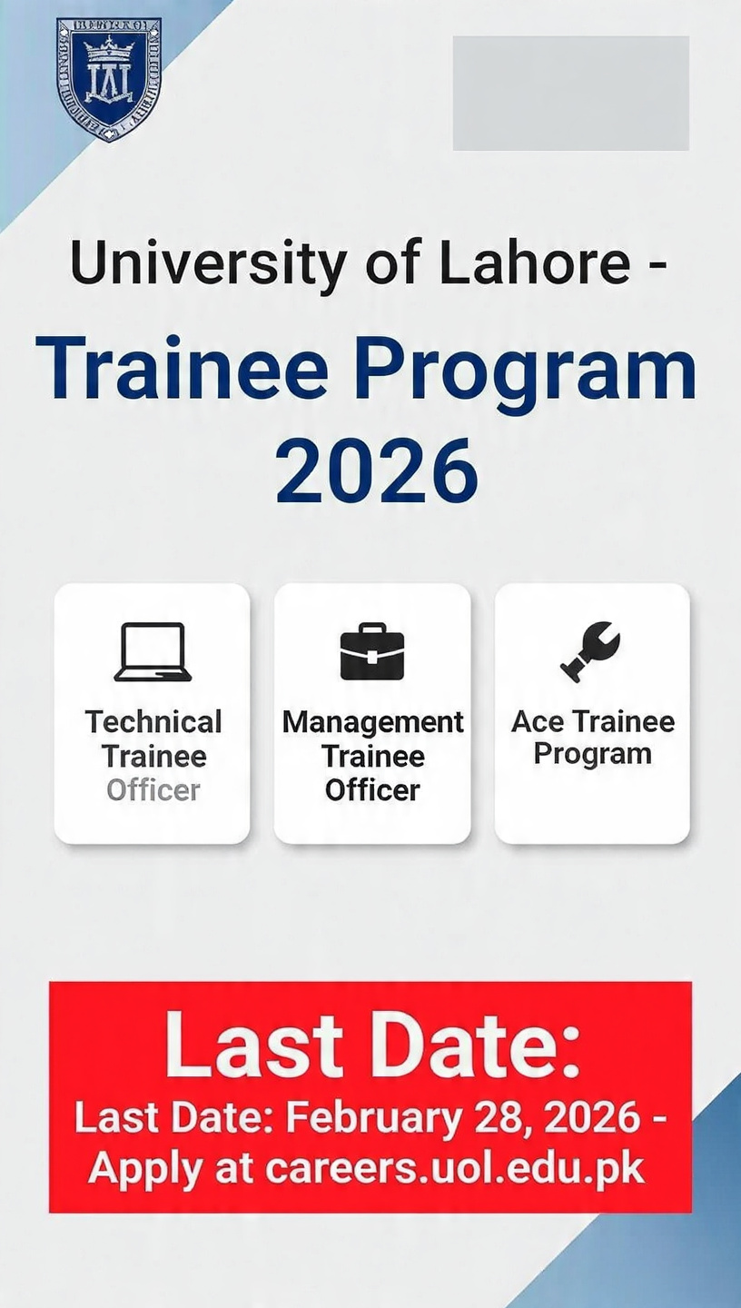 The University of Lahore (UOL), one of Pakistan’s most prestigious private universities, has announced its highly anticipated Technical/Management Trainee Program for the year 2026. This program is specifically designed to groom and retain talented fresh graduates by offering them structured training, hands-on experience, and a well-paying stipend right from the start of their career. The program is being offered in three tracks: Technical Trainee Officer (TTO), Management Trainee Officer (MTO), and the Ace Trainee Program (ATO). The last date to apply is February 28, 2026, and applications must be submitted online at careers.uol.edu.pk.